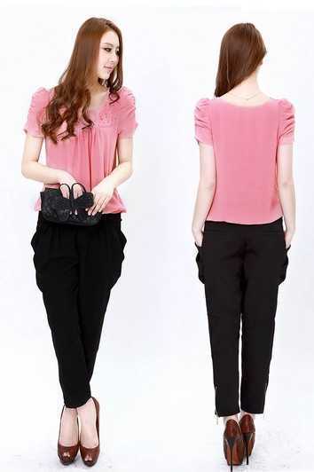 圆领的雪纺衫,不仅舒适度会提高,同时也不会失时尚,落落大方,宽松度也很高,在夏天这样的一款雪纺衫,可大方出游哦!