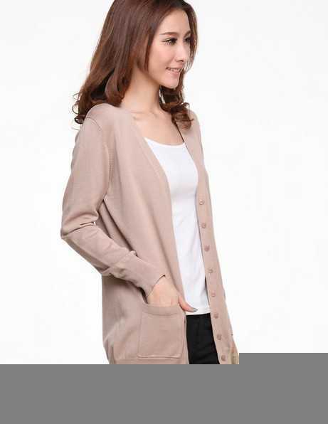 扣子V领,针织套口工艺,贴边绣花,高档品质,螺纹超弹力袖口,定型舒适,具有防风效果,穿上身后整体感觉非常修身,两个小衣袋添轻松,充满淑女味。