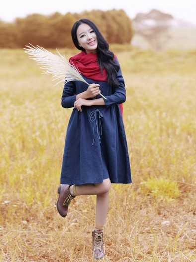 优质的棉麻面料,穿起来很舒适亲肤,围上一条鲜红色的围脖,洋溢出青春阳光气息,身处在金黄色田园上,让你更加的夺目耀眼,简单的穿着散发出淡淡的文艺气息。