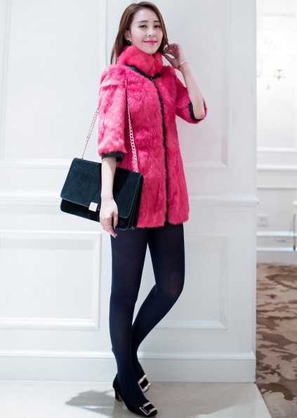 立体的高领子设计,完美锁住温暖,在冬日也不用惧怕寒冷,奢华的兔毛皮草外套,独特时尚的黑色长链子,穿起来很大牌有范儿!