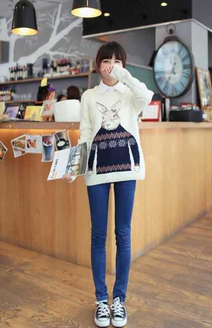 养眼的卡其色,可爱的卡通羊仔毛图案,韩版甜美风格的春季新款毛衣,喜欢么?怎么样?有木有被萌倒了呢?
