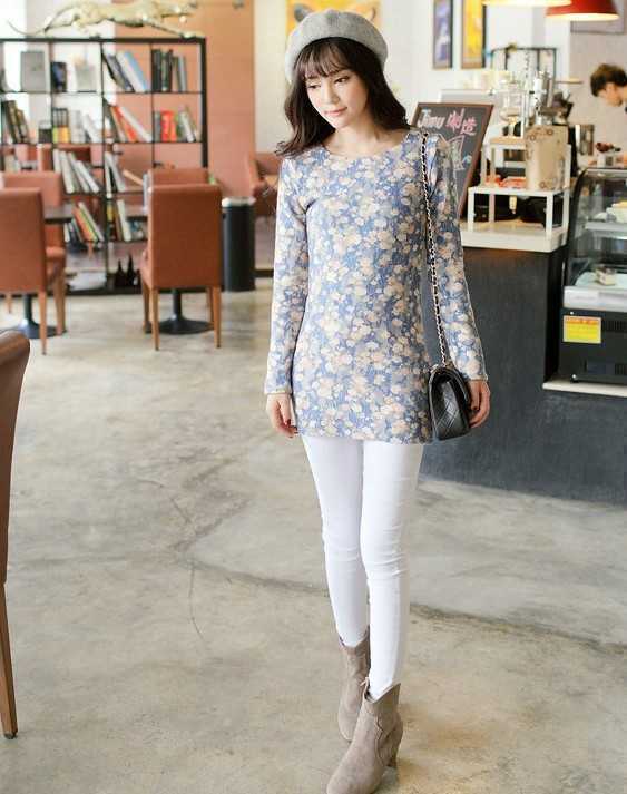 清新甜美的小碎花洋洋洒洒地点缀着这条打底裙,颇有时尚的味道和气息;搭配紧身的白色弹力裤又是另外一种时尚美!