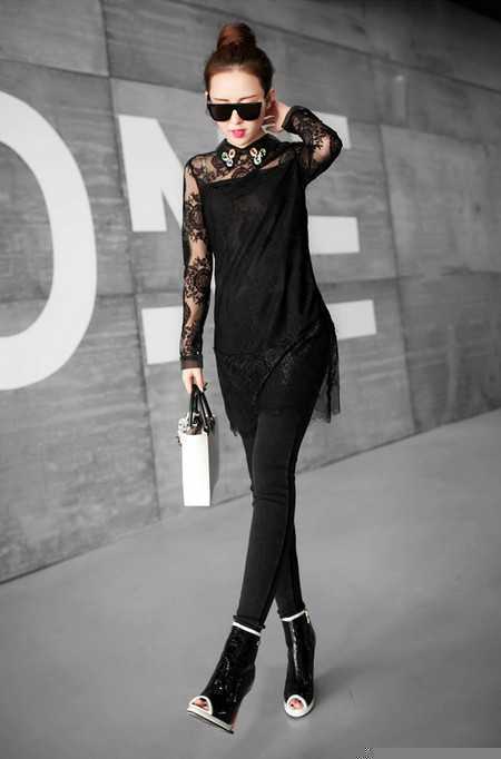 4、蕾丝水钻领连衣裙