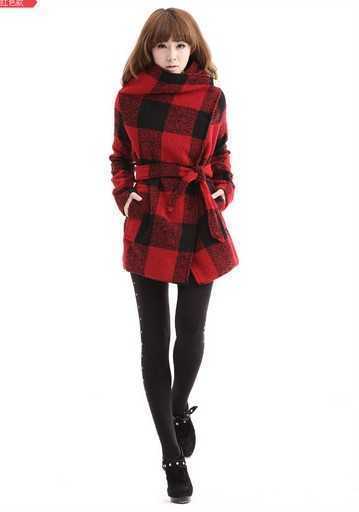 腰带的收腰,精致的格子,做出来的大衣让穿着者十分有气质,搭配紧身裤会显得很干净与利落。