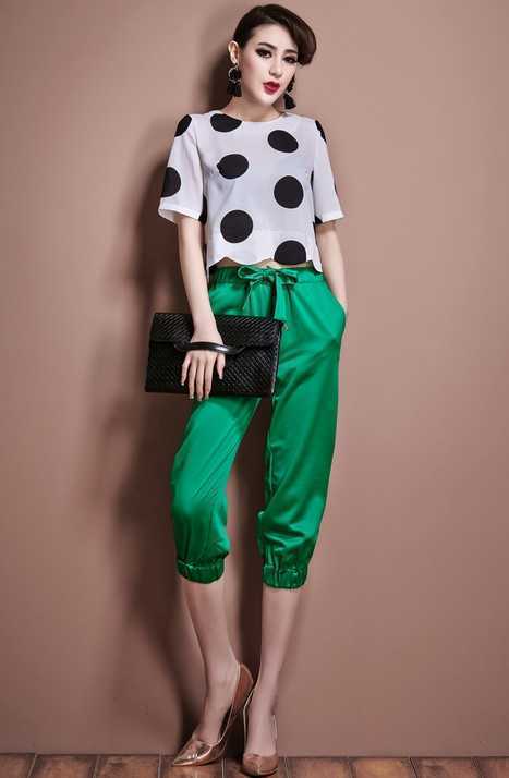 个性别致的印花,欧美风格的上衣,搭配英伦风尚的哈伦裤,展现出潮流而时尚的一面来。