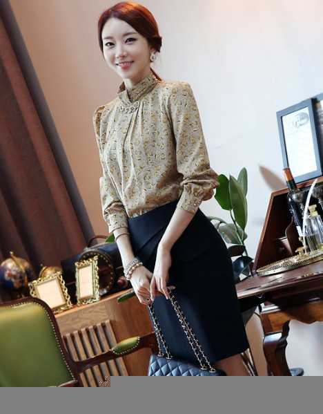 春季韩版高领雪纺衫,小清新的碎花点缀着,更显清新时尚感,搭配简约半身裙,穿出迷人淑女气质。