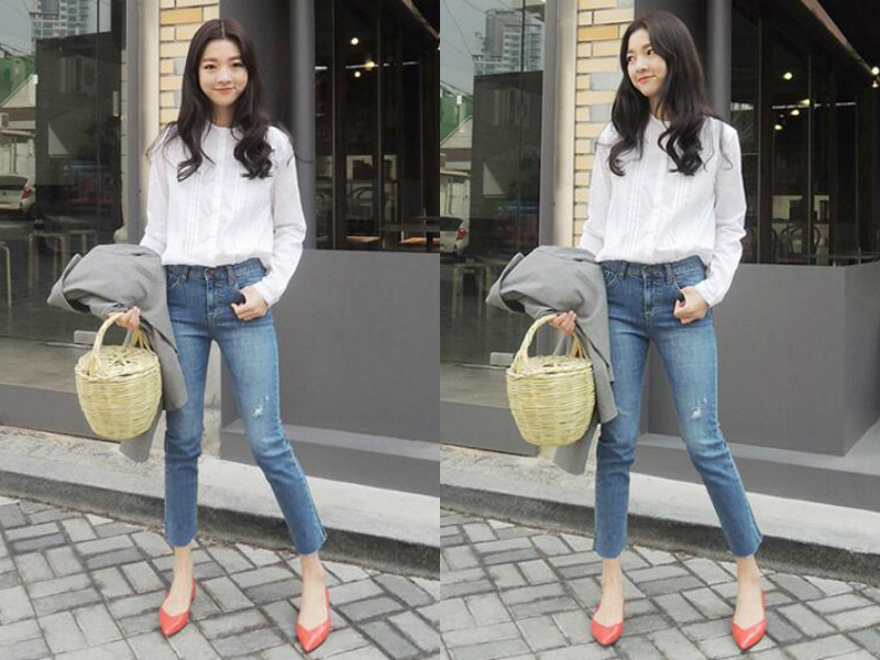 直筒版型的九分牛仔裤,简约大方设计,修身的廓形,美观穿着贴身,高腰的设计打造完美身材比例,收窄的裤脚加上微露的脚踝设计,修饰腿部线条更有显腿长的效果,还很有帅气有型的感觉。