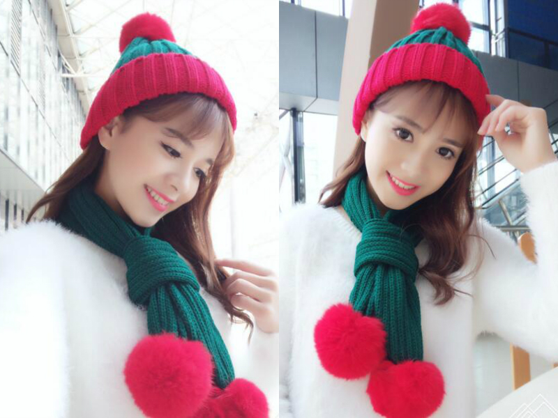 这是一款配套的日韩休闲毛线帽,鲜艳的红绿色帽子很吸引人的注意力,分层的颜色设计很有个性,与同样红绿色的围巾搭配起来更加抢眼,在如此鲜艳的颜色下选择一件纯白色毛线上衣,仿佛雪白的冬天立刻充满了色彩。