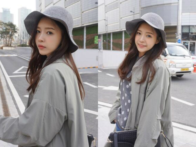 比较简洁的一款渔夫帽,圆领设计的帽檐对脸型能起到修饰作用,在它的映衬下脸蛋看起来要小很多,优质的羊毛呢子材质看起来很有档次,戴上后头型显得很完美,加上灰色低调而优雅,不经意便流露出名媛风范。