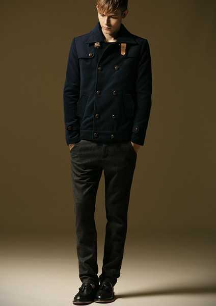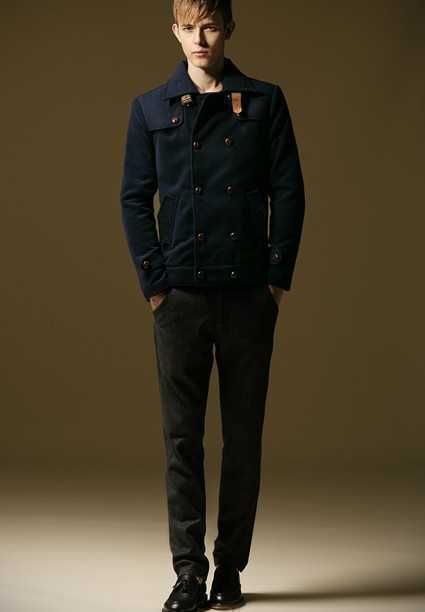 儒雅的深蓝色毛呢外套,木质的结扣设计,展现深层低调的气质。奢华的绒毛大帽子,完美锁住温暖,下身搭配黑色休闲裤子,很简约利落,彰显品质的皮鞋,尽展出帅气干练男性魅力。