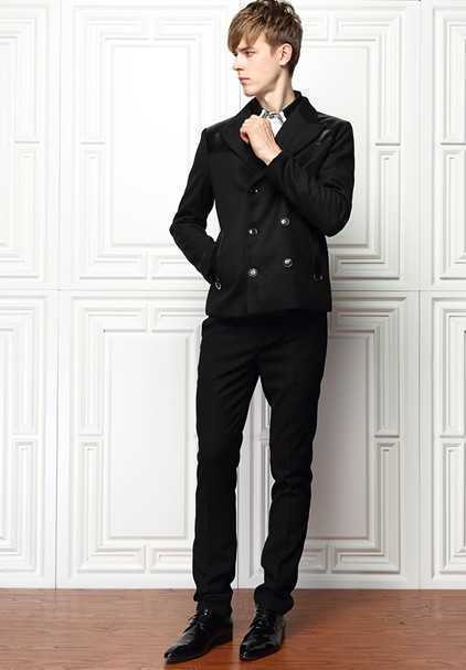 修身黑色版型短外套,内搭时尚的白色衬衫,很精致优雅品味,下身搭配黑色直筒休闲裤,配上尖头时髦的黑色皮鞋,彰显干练绅士风度,这款装扮出席宴席、约会、时尚Party也很适合喔!