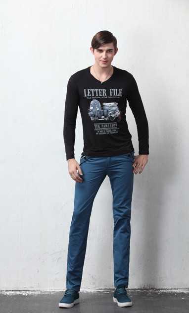 衣身左右对称的设计,让男士呈现完美体态;简约的V领,非一般的气场,打底衫的精致修身,韩版风格纯棉质地柔软舒适,2014年春天穿穿出潮流。
