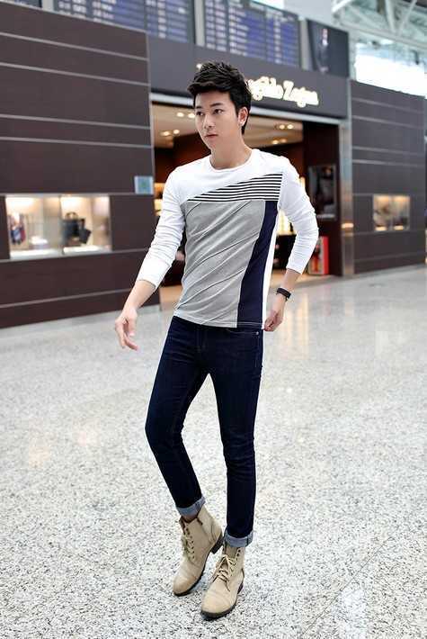 3、男士拼接打底衫