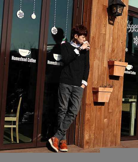 最是适合学院男士穿的一件韩版圆领毛衣,内可穿搭白色的衬衣,会显得既阳光以又有型,体验温暖舒适。