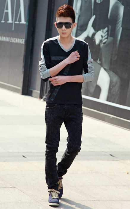 此款2014男士打底衫,拼接自然,穿着舒适,体现高端品质外,伸缩双针卷边精细做工车线细节简约亲肤,帅气时尚。