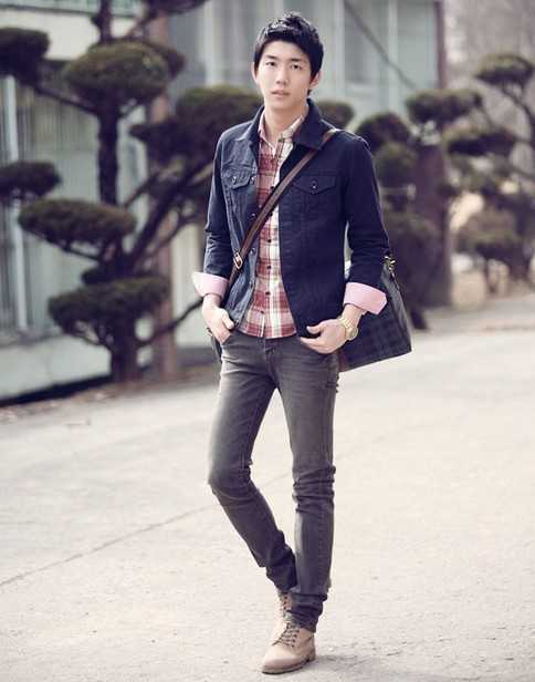 韩版范的男士外套,极少运用金属扣,但是少而精。配以格子衬衣,帅气有型。