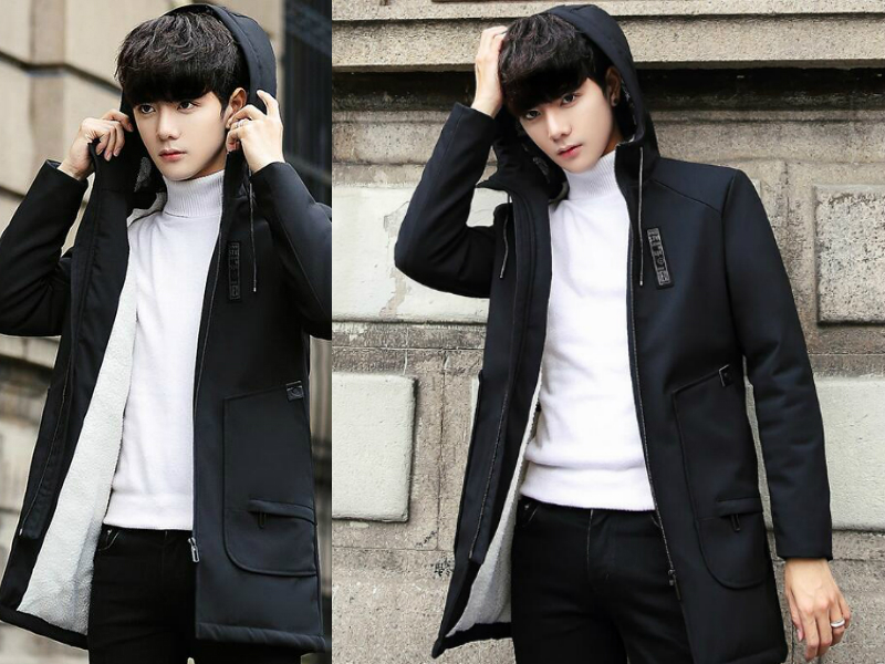 想显得身形挺拔高大的男生不妨选择这件中长款加绒棉夹克哦!内里加绒保暖一件当两件穿,时尚的连帽设计干净利落,侧边大口袋设计简单且实用,3D立体裁剪的H版型修身不显臃肿,经典百搭的黑色无论怎么穿都很好看。