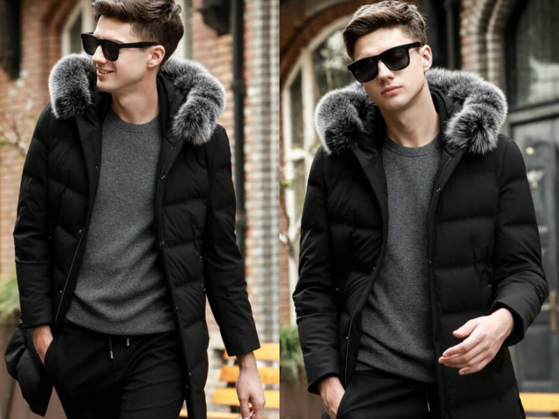 黑色经典耐看,使这件中长款羽绒服更加的百搭。精选优质白鸭绒,直接填充缝合,不仅柔软亲肤还很保暖,连帽设计休闲时尚,大大的狐狸毛领可以随个人喜好拆卸,中长的版型对修饰身形也起到一定作用,让男生穿上显高又显man。