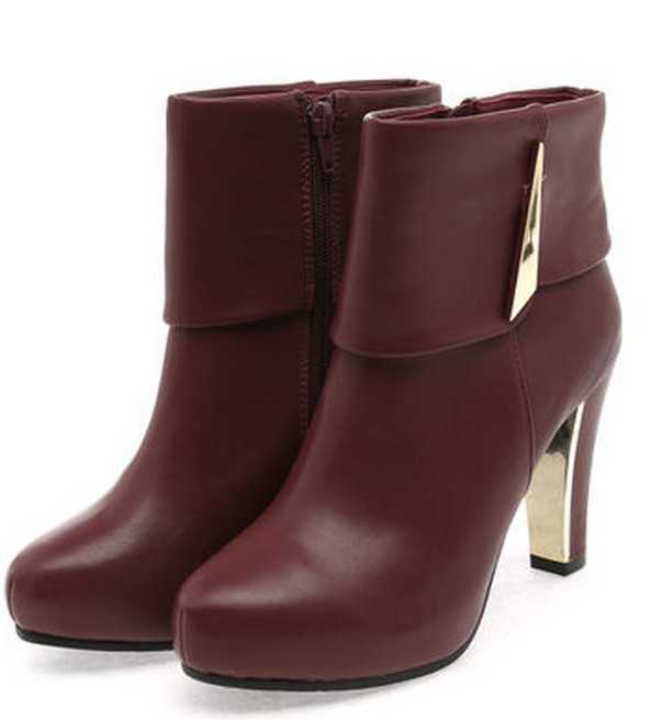 金属感十足的点缀,优雅自然的枣红色高跟靴,穿起优雅时尚女性气质,完美演绎冬靴秀,时尚优雅气质你也能拥有!