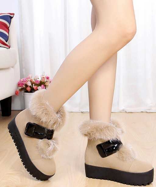 时尚保暖的兔毛点缀着,个性独特的皮带扣设计,穿出十足时尚感,黑色加厚的松糕底,轻松穿出高挑身材。