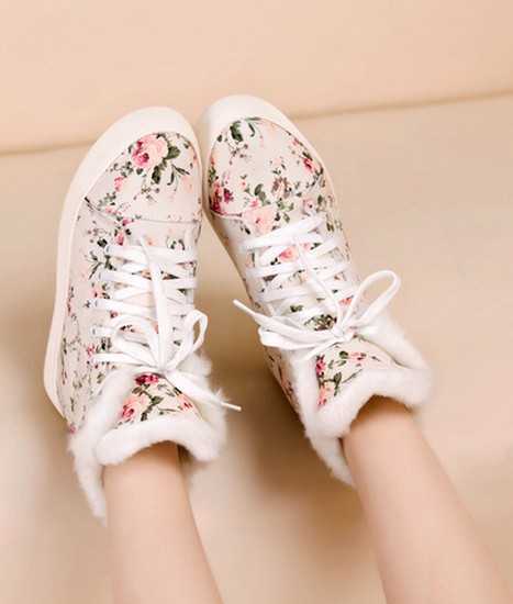 小清新的碎花,经典的绑带式,穿出小清新甜美气质感,温暖的绒毛,加厚的运动款松糕鞋,让你冬季随时运动时尚起来。