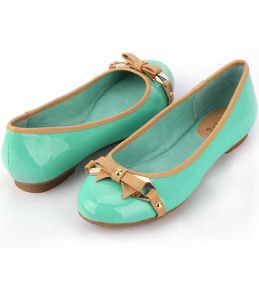 休闲平跟的设计,穿出舒适感十足,甜美又精致的小蝴蝶结装饰,更显时尚感,清新扑鼻的绿色,光感十足的鞋面,穿出优雅淑女气质。