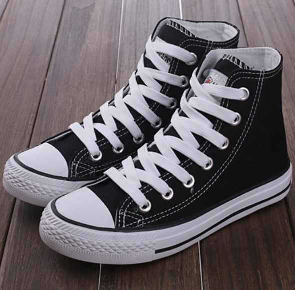 简约经典的黑色高帮帆布鞋,经典的绑带式设计,百搭又时尚,随意搭配穿出超时尚有范儿!