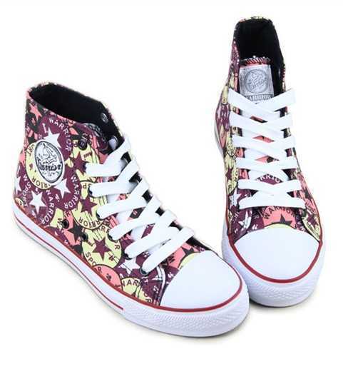 抢眼的彩色的高帮帆布鞋,经典的绑带式款式,穿出轻便时尚贴脚感,时尚的涂鸦设计,增添时尚感,轻松穿出简约街头风。