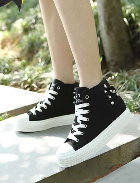 内增高的拼色高帮帆布鞋,精美的水钻点缀,穿出阳光时尚感,百搭休闲的款式,随意搭配非常时尚好看。