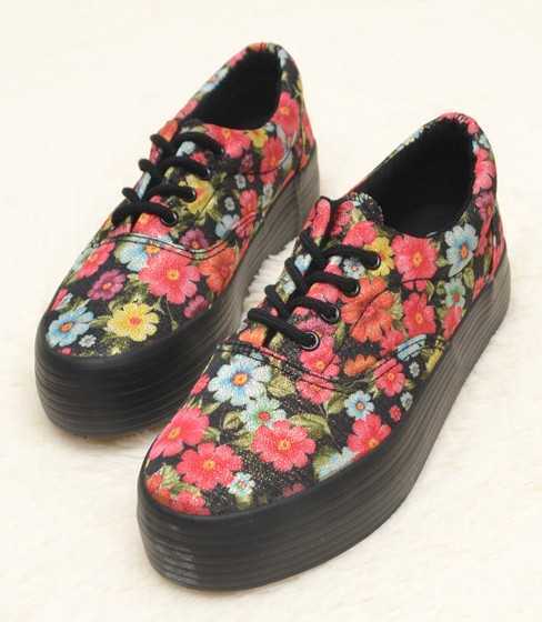 小清新时尚感的黑色碎花松糕鞋,加厚舒适的松糕底,完美拉长腿部纤细曲线,让你穿出舒适又不失时尚感的装扮,是一款增添气场的小清新风鞋子。