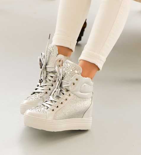 闪亮的水钻点缀着,非常潮流时尚的款式,高帮内增高的设计,是许多爱美MM们的最爱,穿起来不仅时尚更显气质呢!