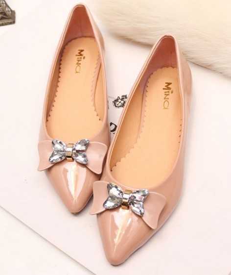 春季裸粉色平底鞋,亮眼漆皮材质设计,给人眼前一亮的感觉,让你春季尽展出甜美淑女范儿。