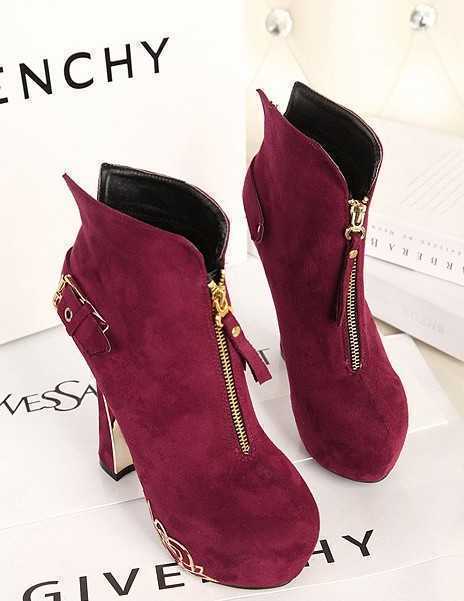 人造短毛绒的内里,柔软舒适的欧美防水台高跟短靴,穿着彰显时髦与奢华,高贵与名媛。