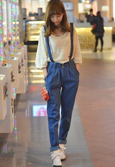 宽松的时尚牛仔背带裤,穿起来很舒适显高,搭配黑白拼色的春季休闲鞋,增添个性时尚感,是春季必备的时尚单品喔!