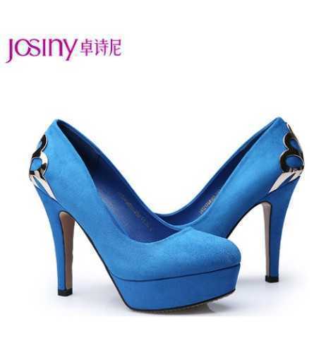 金属拼接款春季蓝色高跟鞋