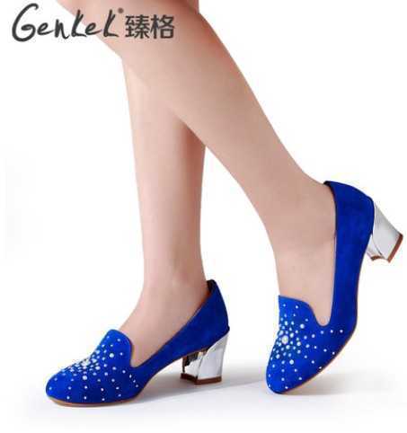 独特水钻点缀的春季蓝色高跟鞋,超舒适的粗低跟,穿出不一样的时尚感,完美展现出迷人女人味。