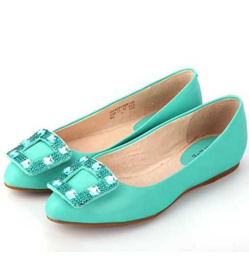充满春天气息的青色春季平底鞋,精美的水钻点缀,很显时尚感,随意搭配裙装或裤装很显淑女范儿。