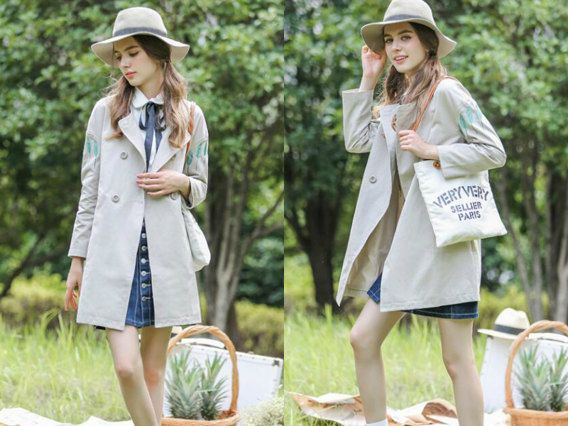 秋天给人感觉是凉爽惬意的,穿得休闲简单点自然不会错。这件灰色风衣版型匀称,款式低调简约,搭配与之长度差不多的牛仔半身裙,更使一双修长纤细的腿展露无遗。上半身则内搭一件娃娃领的衬衫,与女生可爱的发型相呼应,清新又减龄。