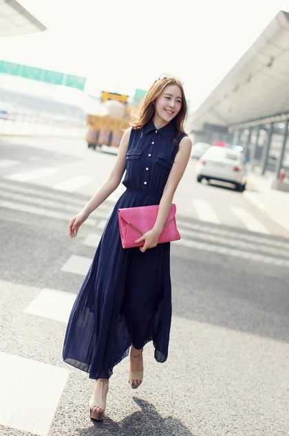 2、无袖雪纺连衣裙