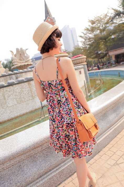 吊带的设计,圆点的款式,让这款碎花裙看起来具有更多小女人的妩媚和性感。同样收腰的设计让这款圆点碎花裙看起来更加的时尚,夏天里的浪漫和风情就尽情地展现出来了。