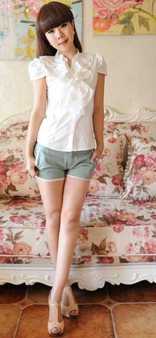 既想穿出淑女的气质,又想要穿衬衫的MM们这样的一款衬衫真的是很不错的哦。单排多扣的衣门襟让这款衬衫更加的甜美可爱,淑女范儿就这样展现出来了,同时,圆领的设计体现出来更多夏日气息。要走淑女路线的MM们真的不要错过这么美的一件淑女衬衫哦。