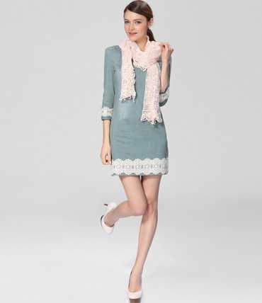 蕾丝的裙摆展现出来女性优雅知性的气质,蕾丝也是这款花边牛仔连衣裙的主打,更加的修身和时尚,是时尚界比较潮流的一款仔连衣裙。