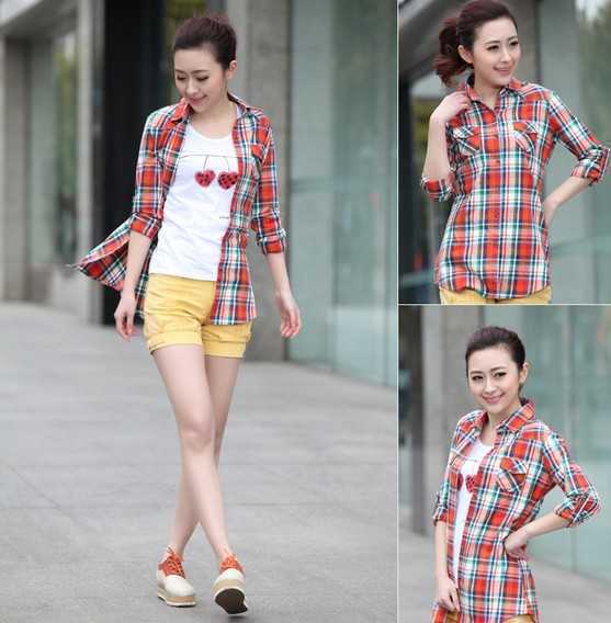 格子衬衣哦!中袖格局,更加的时尚和大方,如果外穿的话效果更佳,内穿上一件休闲的T恤,落落大方,款约动人,这样的穿搭出去逛街或者傍晚散步都是很不错的哦。