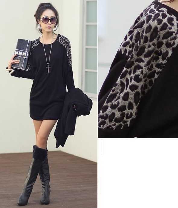 5、豹纹长款T恤