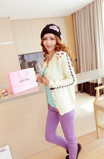 精巧的绣花,沿袭复古风格,表现女孩清新优雅气质的2014新款毛衣,搭配打底T恤最时尚最百搭。