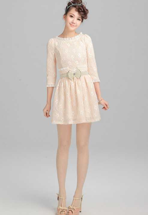 淡淡的小清新风格春季蕾丝连衣裙,增添甜美感的粉色格调,轻松打造出小清新乖乖女好形象,是2014年春季必备的大热款春季连衣裙喔。