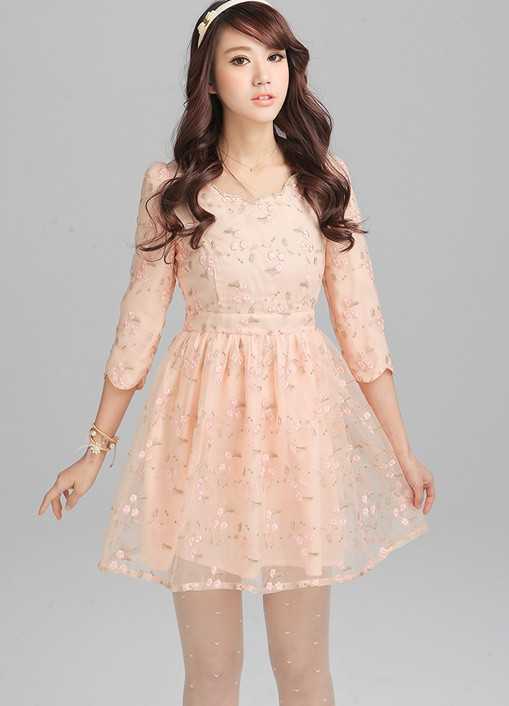 仙美欧根纱粉色蕾丝连衣裙,大热时尚的款式,穿出不一样的甜美时尚感,独特的高腰设计,凸显出纤细腰身曲线,演绎出高挑甜美范儿。