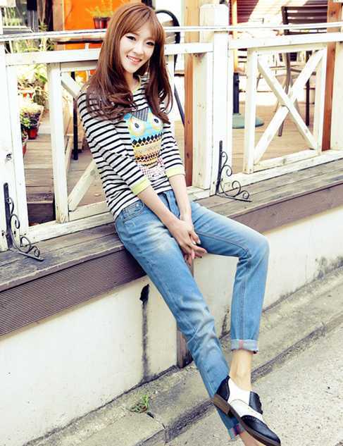 猫头鹰图案是今年流行的时尚因素,亮眼拼色款春季黑白长款T恤,穿出帅气经典造型。