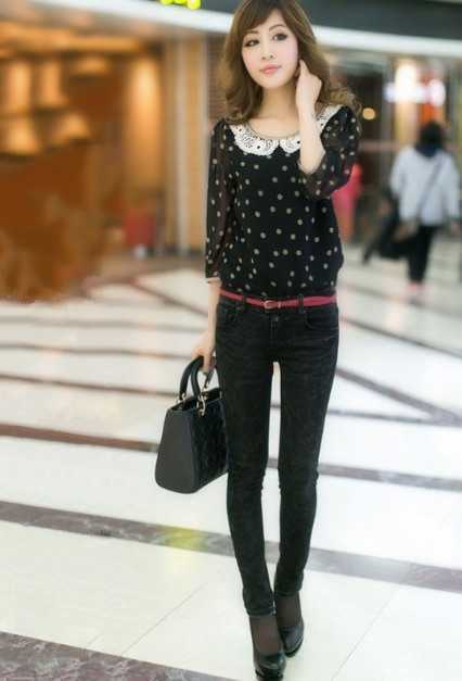 黑色小波点雪纺衬衣,是每年春季衣橱 必备的时尚单品,百搭的款式,让你轻松穿出不一样的时尚装扮。