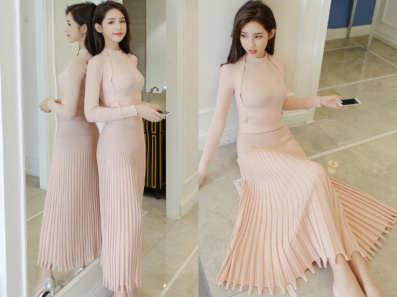 非常好看舒服的粉色,胸部的塑腰设计可以让你时刻保持背部挺直,贴身的腰部设计恰到好处,无形中拉长了女生的身材比例,裙摆为A字型大摆,长至脚踝让妹子看起来优雅大方,不管是单穿或者打底都可以,总之穿出去回头率肯定很高。